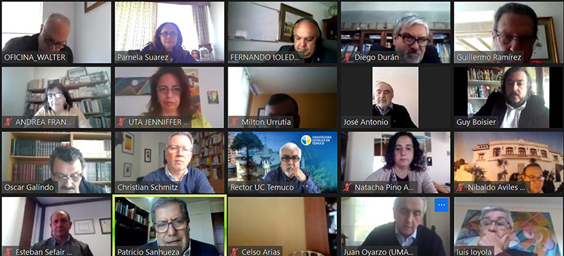 La sesión plenaria de rectores de la Agrupación de Universidades Regionales de Chile se realizó en modalidad virtual (vía Zoom), el 28 de octubre 2020 y fue conducida por su presidente, el rector de la Universidad de Playa Ancha, Patricio Sanhueza V.