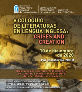¿Qué forma adoptan la crisis individuales y comunitarias en las literaturas en lengua inglesa? Esta es una de las interrogantes que motivan la realización del V Coloquio de Literaturas, que organiza el área de literaturas en lengua inglesa del Departamento de Literatura y el Magíster en Literatura, con el patrocinio de la Facultad de Humanidades.