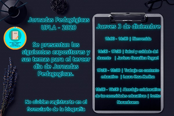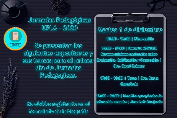 Estudiantes de Pedagogía en Historia y Geografía (generación 2017) de la Facultad de Humanidades realizarán a partir de hoy martes 1 de diciembre las «Jornadas Pedagógicas UPLA H Y G. 1ra versión: Un espacio para la reflexión», actividad que se extenderá mañana miércoles 2 y jueves 3.