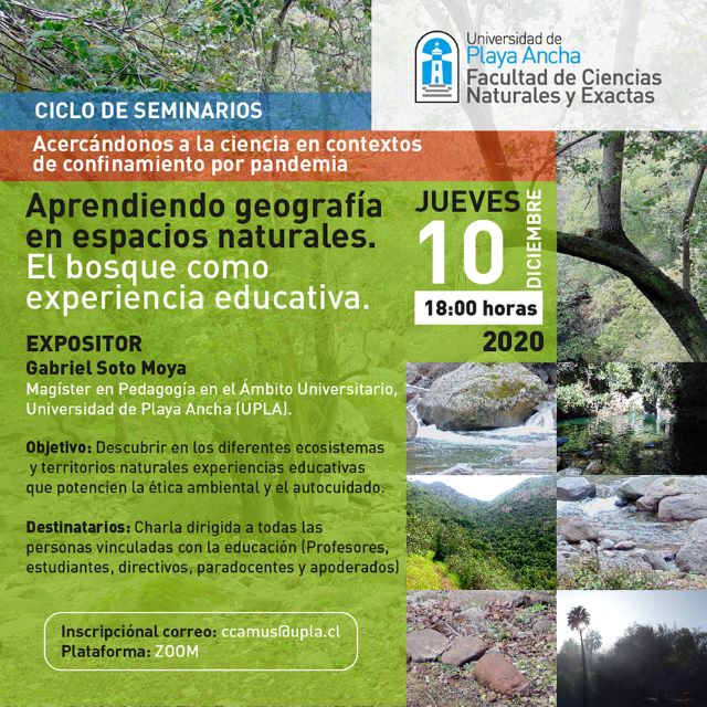 “Aprendiendo geografía en espacios naturales” será el tema que abordará el académico de la Facultad de Ciencias Naturales y Exactas, Gabriel Soto Moya, Magíster en Pedagogía en el Ámbito Universitario.