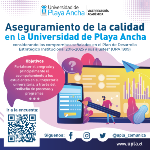 El instrumento fue elaborado por la Unidad de Estudios Curriculares y responde a las necesidades del proyecto “Aseguramiento de la calidad en la Universidad de Playa Ancha, considerando los compromisos señalados en el Plan de Desarrollo Estratégico Institucional 2016-2025 y sus ajustes” (UPA 1999), donde uno de sus principales objetivos consiste en fortalecer el pregrado y principalmente el acompañamiento a los y las estudiantes en su trayectoria universitaria, a través del rediseño de procesos y programas.