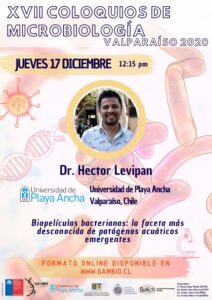 Con la exposición titulada «Biopelículas bacterianas: la faceta más desconocida de patógenos acuáticos emergentes», a cargo del académico e investigador de la Facultad de Ciencias Naturales y Exactas de la Universidad de Playa Ancha, Dr. Héctor Levipan Colil, el jueves 17 de diciembre, a las 12:15 horas, finalizarán los XVII Coloquios de Microbiología Valparaíso 2020.
