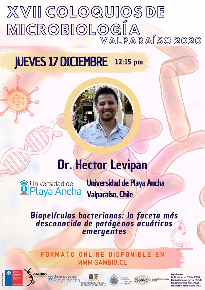 Con la exposición titulada «Biopelículas bacterianas: la faceta más desconocida de patógenos acuáticos emergentes», a cargo del académico e investigador de la Facultad de Ciencias Naturales y Exactas de la Universidad de Playa Ancha, Dr. Héctor Levipan Colil, el jueves 17 de diciembre, a las 12:15 horas, finalizarán los XVII Coloquios de Microbiología Valparaíso 2020.