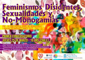 Contribuir a la discusión crítica en torno a los feminismos disidentes, las sexualidades contra hegemónicas y las prácticas No-Monogámicas, es el objetivo del ciclo de 11 conversatorios “Feminismos Disidentes, Sexualidades y No-Monogamias”, que se iniciará el próximo jueves 25 de marzo, a partir de las 19.00 horas.