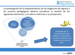 En cuanto a la disminución de exigencias, su opinión es que la intención de la actual legislación era positiva, pero no tomó en cuenta la realidad nacional, donde los estudiantes con mejores resultados académicos prefieren carreras con mayor prestigio y remuneración.