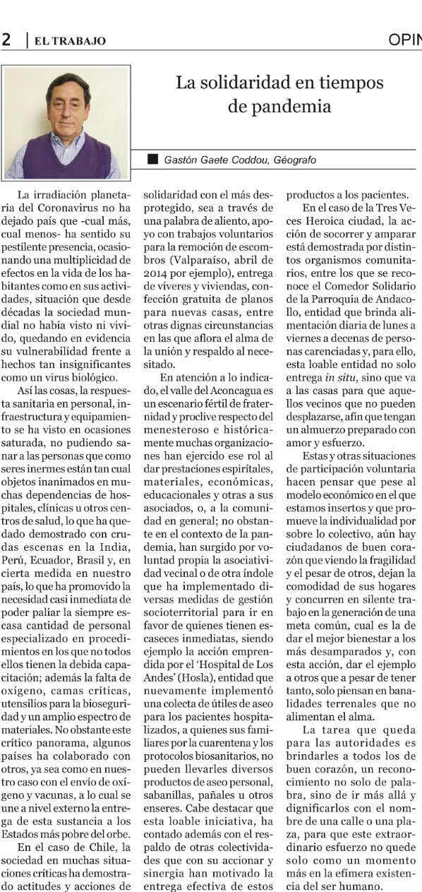 Columna de opinión publicada en diario El Trabajo de San Felipe, el miércoles 28 de abril de 2021.