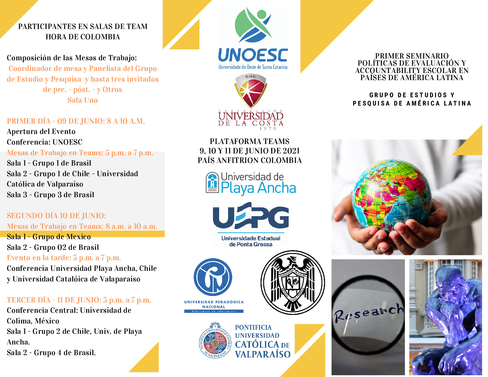 El evento, que considera conferencias centrales por la plataforma YouTube y mesas de trabajo vía Teams, es organizado por las entidades colombianas Universidad Nacional Pedagógica y Universidad de la Costa, junto a la Universidad del Oeste de Santa Catarina, Brasil.