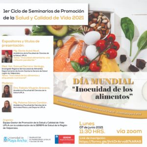 En la oportunidad y, en el marco del Día Mundial de la Inocuidad de los Alimentos, el encuentro contará con la académica de la Facultad de Ciencias de la Salud, Mg. Gloria Aubá Nicoli, quien expondrá sobre “Inocuidad alimentaria: una reflexión pendiente». Posteriormente, el encargado regional de Inocuidad de los Alimentos del Departamento de Acción Sanitaria de la Seremi de Salud, Médico Veterinario, Samuel Serrano Verdugo, se referirá a la «Inocuidad de los alimentos y etiquetado nutricional».