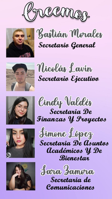 Después de dos años, la carrera de Pedagogía en Historia y Geografía de la Facultad de Humanidades, vuelve a contar con una Mesa Ejecutiva de Centro de Estudiantes. Se trata de la lista “Creemos. Construyamos una mejor historia”, cuyo secretario general es Bastián Morales Hidalgo, de la promoción 2020.