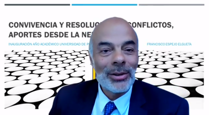 Los conocimientos y experiencias adquiridos le permitieron ofrecer la clase magistral “Convivencia y resolución de conflictos. Aportes desde la neurociencia”, como inauguración del Año Académico de la UPLA, que por primera vez se realizó totalmente en línea.
