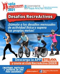 La Dirección de Deportes y Recreación (DIDER) de la Universidad de Playa Ancha, dependiente de la Dirección General de Desarrollo Estudiantil, extendió a la comunidad una invitación para sumarse a la nueva instancia de actividad física denominada «Desafíos RecreActivos», que mensualmente se desarrollarán como parte de la motivación  de esta unidad a mantener una buena salud física y mental.