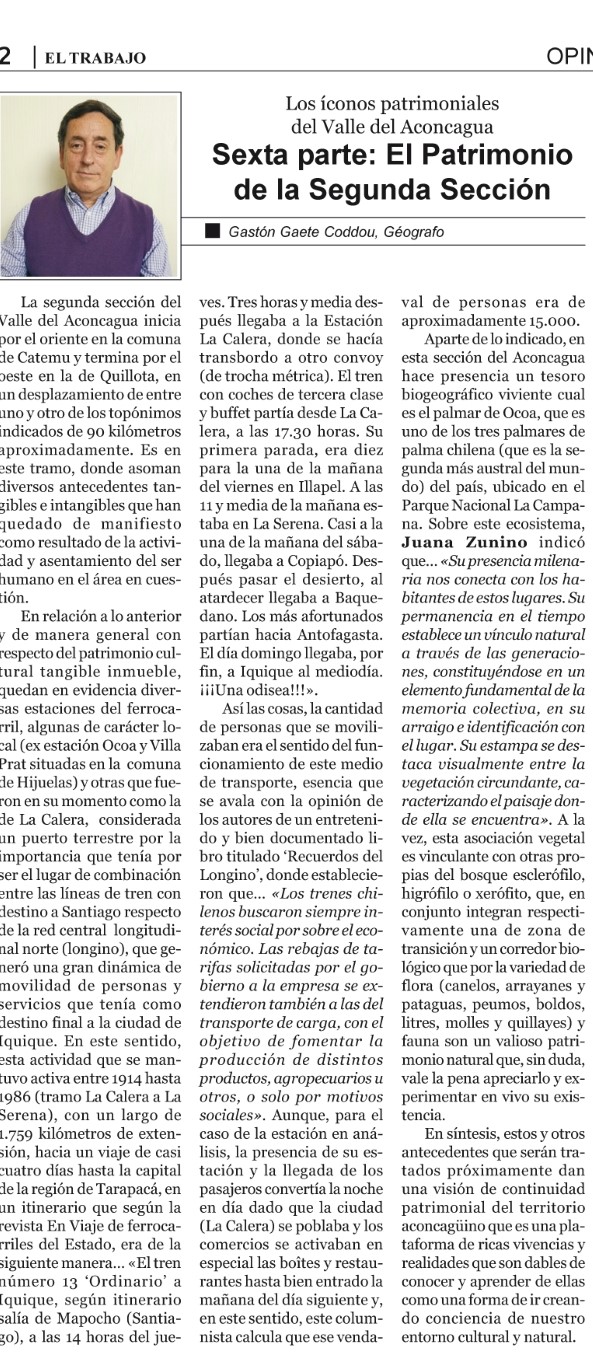 Columna de opinión publicada en diario El Trabajo de San Felipe, el miércoles 23 de junio de 2021