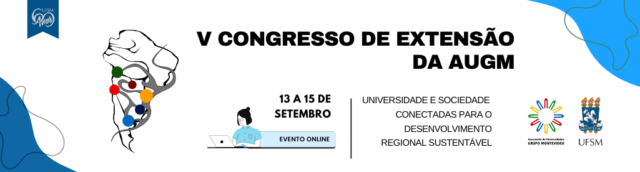 Para más información, entrar al sitio web del evento: https://www.ufsm.br/pro-reitorias/pre/2021/06/29/prorrogado-o-periodo-de-submissao-de-trabalhos-para-o-v-congresso-de-extensao-augm/