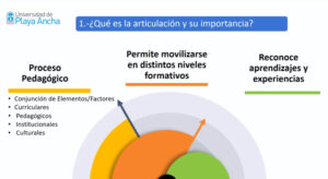 En esta oportunidad se abordó la temática «Experiencias Nacionales de Articulación entre Educación Media Técnico-Profesional, Educación Superior Técnico Profesional y Formación Profesional de Pregrado”, de la mano de Jessica Fleming Alegría y Celeste Soto Ilufi, expertas en Educación Técnico-Profesional, quienes desarrollaron la actividad en formato charla taller.