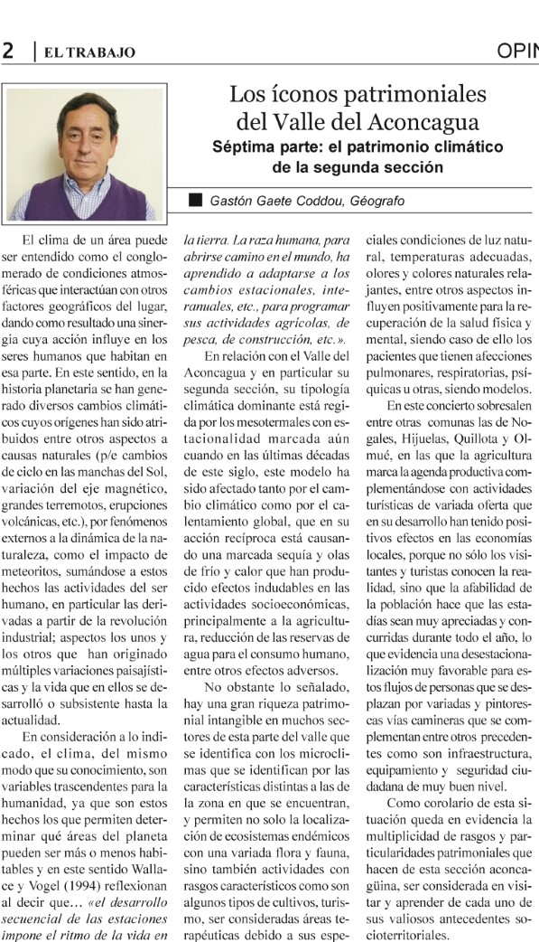 Como corolario de esta situación, queda en evidencia la multiplicidad de rasgos y particularidades patrimoniales que hacen de esta sección aconcagüina ser considerada en visitar y aprender de cada uno de sus valiosos antecedentes socioterritoriales».