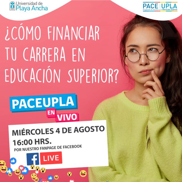 La Universidad de Playa Ancha a través del Programa de Acceso a la Educación Superior (PACE) 2021 y de su componente de Preparación en la Enseñanza Media (PEM), realizará una nueva sesión En Vivo, el miércoles 4 de agosto, a las a las 16 horas, con el tema “¿Cómo financiar tu carrera en Educación Superior?»