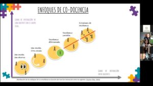 Posteriormente expusieron estudiantes de la carrera, con presentaciones fruto de sus procesos de investigación y sistematización. Abordaron temáticas asociadas a la Aplicación de la codocencia en el aula, Codocencia y trabajo colaborativo, Prácticas de codocencia entre profesores de educación básica y educadoras diferenciales, Codocencia y coenseñanza en el aprendizaje, Diversificación en el Aprendizaje, Evaluación Diversificada y Gestión Inclusiva.