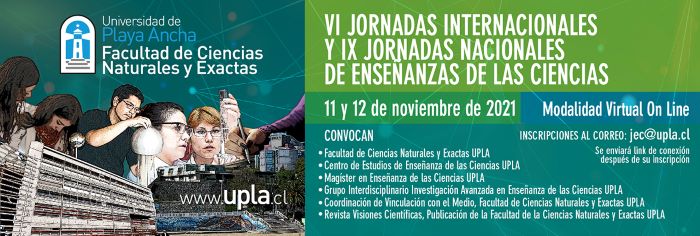 La Universidad de Playa Ancha invita a profesores de todos los niveles educativos, investigadores y estudiantes de pre y postgrado a participar en las VI Jornadas Internacionales y IX Jornadas Nacionales de Enseñanza de las Ciencias, a realizarse el 11 y 12 de noviembre, en modalidad virtual.