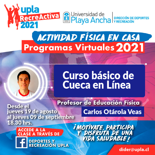 Si tiene alguna duda de cómo participar en este curso o desea hacer consultas específicas sobre los Programas de Actividad Física en Casa Virtuales, escriba al correo electrónico dider@upla.cl