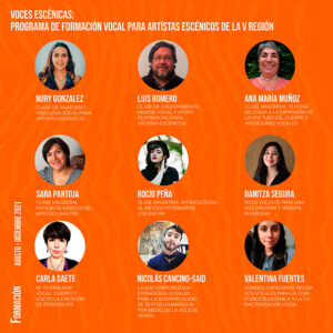 Valentina Fuentes, coordinadora del programa de formación vocal, explicó que esta iniciativa está dirigida a la comunidad artística escénica de la Región de Valparaíso interesada en el aprendizaje, desarrollo, promoción y transmisión profesional en el área de la voz. Para ello -dijo- se contará con profesionales de los campos de la fonoaudiología, canto, teatro y de diversas técnicas de conciencia corporal/vocal.
