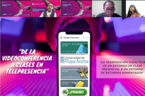En el diseño de experiencia formativas, el coordinador de la UID UPLA sostuvo que, con el abordaje de la didáctica digital, que es el diseño que se quiere implicar para agregar valor a la praxis docente, los recursos multimodales para efectuarla y la elección de un proceso evaluativo, “la universidad ha ido avanzando de pasar de una videoconferencia a clases en telepresencia, debiendo transitar, previamente, por la revisión de aspectos metodológicos, del ambiente de aprendizaje, del contexto de la educomunicación y de los recursos de aprendizaje, que permitirán desarrollar las actividades propuestas”.