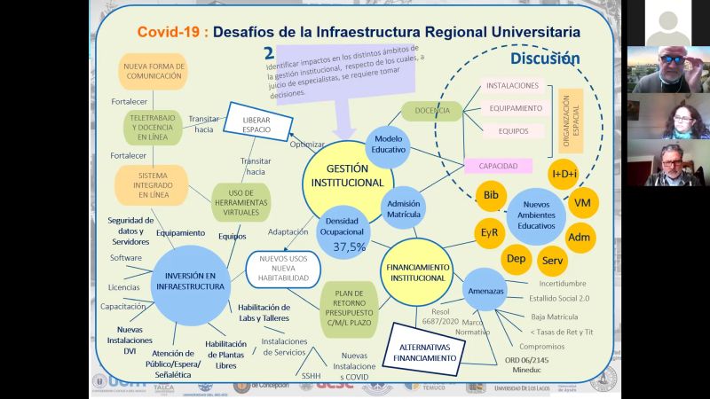 «Retorno y Presencialidad: Desafíos Múltiples para las Universidades Regionales» fue el nombre de la actividad organizada conjuntamente por la Agrupación de Universidades Regionales (AUR) y la Universidad de Concepción, y que congregó a representantes de las vicerrectorías académicas, económicas, de vinculación, postgrado e investigación de los 22 planteles regionales. El encuentro abordó la complejidad de iniciar el retorno a actividades presenciales en todas las áreas del quehacer universitario y particularmente a los espacios educativos. Quedó claro que proveer espacios seguros a estudiantes, académicos y funcionarios implicará diversos ajustes académicos, administrativos y también financieros.