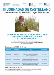 Tributar la vida del Dr. Daniel Lagos Altamirano (Q.E.P.D), conmemorar su aporte a la universidad desde la pedagogía, la investigación lingüística y destacar su calidad como ser humano, es el principal objetivo de las III Jornadas de Castellano, que se realizará el 2 y 23 de octubre.