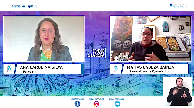 Dibujante proyectista, diseño y Licenciatura en Arte, fueron las tres áreas de formación profesional que iniciaron el ciclo de charlas virtuales “Conoce tu carrera” de la Universidad de Playa Ancha (UPLA), cuyo objetivo es mostrar la oferta académica a los estudiantes de colegios y liceos de la región, especialmente interesados en ingresar a la universidad el próximo año.