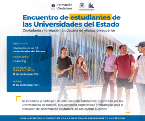 Intercambiar experiencias y opiniones sobre las estrategias que tienen las y los estudiantes para desarrollar la ciudadanía y la formación ciudadana en la vida universitaria, es el objetivo del “Encuentro de estudiantes de las Universidades del Estado: Ciudadanía y formación ciudadana en educación superior”, que se desarrollará entre el 1 y el 7 de diciembre.