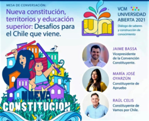 La Dirección General de Vinculación con el Medio (DGVM) de la Universidad de Playa Ancha organizó una mesa de conversación denominada “Nueva Constitución, territorios y educación superior: Desafíos para el Chile que viene”, enmarcada en la Primera Versión de la Universidad Abierta UPLA.