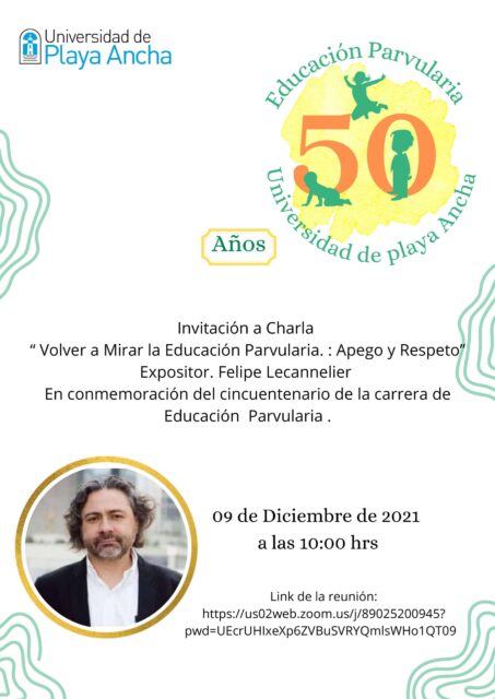 Uno de los hitos más importantes lo constituirá la charla “Volver a mirar la Educación Parvularia: Apego & Respeto”, dictada por el Psicólogo Felipe Lecannelier, el 9 de diciembre, a las 10:00 horas, vía Zoom, cuyas coordenadas de acceso son: https://us02web.zoom.us/j/89025200945?pwd=UEcrUHIxeXp6ZVBuSVRYQmlsWHo1QT09 (ID de reunión: 890 2520 0945 Código de acceso: 178810)