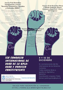 Con participantes de México, España, Argentina y Chile, la carrera de Derecho de la Facultad de Ciencias Sociales de nuestra casa de estudios realizará el «Primer Congreso Internacional de DD.HH de la Upla: DD.HH y proceso constituyente».