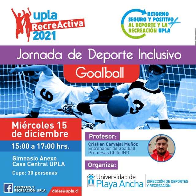 La Dirección de Deportes y Recreación, dependiente de la Dirección General de Desarrollo Estudiantil, en el marco de la última campaña «UPLA +Saludable» y en celebración del mes de diciembre «Mes de la Inclusión Deportiva», invita a la comunidad a participar en la «Jornada de Goalball«.