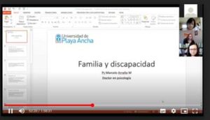 La clase fue impartida por la Mg. Ivette Norambuena, Directora de la Carrera de Educación Diferencial de la UPLA, con 13 años de experiencia en trabajo con personas con discapacidad en el sistema educativo e integrante del equipo de evaluación interdisciplinaria en Fundación TEAbrazo; y Marcelo Arraño, Doctor en Psicología, académico Escuela de psicología Universidad Autónoma de Chile y de la Facultad de Ciencias de la Educación, UPLA y quien durante 17 años ha trabajado con personas con discapacidad, tanto en escuela especial como en proyecto de integración escolar. Moderó este conversatorio, la académica Giselle Escarpentier, Directora de la carrera de Pedagogía en Educación Básica.