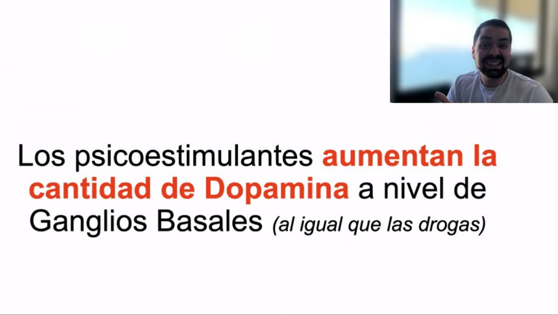 El segundo exponente fue Julio Riquelme Alcázar, médico cirujano, especialista en Neurología Adulto y magíster en Ciencias Biológicas, mención neurología celular y molecular, quien abordó las características y efectos de los fármacos, y su relación con la concentración y un posible mejor rendimiento en el proceso de estudio de universitarios, los cuales ingieren y/o abusan de estas sustancias con el fin de obtener mejores resultados académicos.