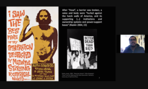 Como ya es costumbre, el coloquio se inició con la presentación de un académico invitado: El profesor Julio Uribe Ugalde, candidato a doctor por The University of Melbourne, Australia, expuso “Diálogos políticos y acústicos entre ‘Aullido’ de Allen Ginsberg y ‘Manifiesto’ de Pedro Lemebel”.
