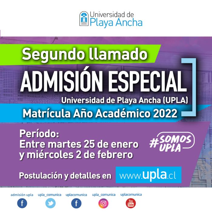 De acuerdo a lo informado por la Dirección de Admisión UPLA, quienes respondan a este segundo llamado deberán hacerlo exclusivamente por la plataforma en línea www.upla.cl.