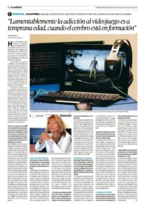 La doctora en Neurociencia Cognitiva Aplicada subraya que junto con tomar conciencia de esta problemática se hace necesario abordar «la posibilidad al menos de que se hagan programas y propuestas de manera precoz y que se tome en consideración el videojuego, para poner algunas normas y reglas que regulen su venta y el tiempo de exposición, porque esta no es una adicción inmediata como pasa con la cocaína, sino que se va incrementando, en la medida en que voy participando de esta práctica y voy ganando».