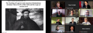 Le siguió la presentación de la Dra. Anna Tropia, de la Univerzita Karlova Praha (República Checa), sobre su estudio de rastreo e identificación de fuentes manuscritas e impresas en la enseñanza de la psicología jesuítica. Finalmente, el Dr. Roberto Hofmeister Pich, de la Pontificia Universidade Católica do Rio Grande do Sul (Brasil) expuso sobre la enseñanza de la lógica en América Latina, centrándose especialmente en el curso ad mentem Scoti del franciscano peruano Jerónimo de Valera.