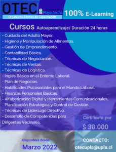 La invitación constante del OTEC UPLA es reforzar las competencias, habilidades y actitudes de las personas en distintas áreas, en donde la Universidad de Playa Ancha través de este organismo, puede apoyar con sus distintos cursos y planes de capacitación.
