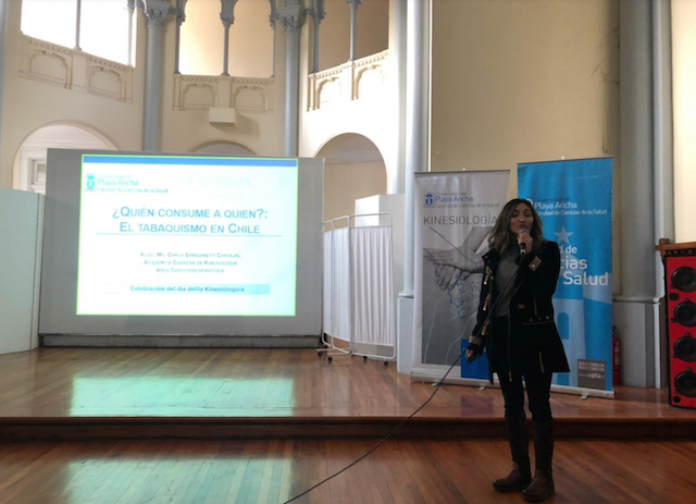 El seminario concluyó con la presentación de la académica Carla Sanguinetti, quien expuso sobre el tabaquismo en Chile y la intervención que el kinesiólogo hace en el paciente.