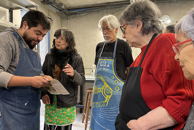 El curso fue orientado para las personas mayores con motivo de valorizar sus experiencias vividas e integrarlas al guión museográfico y relato curatorial del Museo. El taller contempló tanto sesiones teóricas y prácticas sobre el grabado, sus técnicas y conservación para la formación de los y las participantes como mediadores/as del MUG.