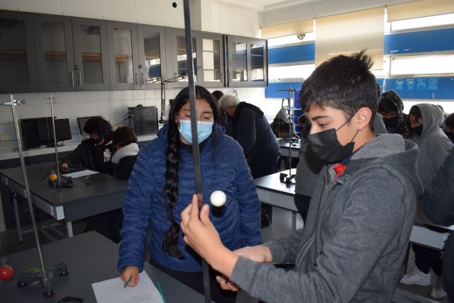 Fue el caso de 25 estudiantes de primero medio del Liceo Pablo Neruda de la comuna de Navidad, Región de O’Higgins, quienes fueron testigos en el Laboratorio de Química de la UPLA de diversas reacciones químicas realizadas por los futuros profesores de la disciplina, hechos con materiales caseros como verduras, vinagre y detergentes. En tanto, en el laboratorio de Mecánica y Ondas de manera lúdica efectuaron mediciones y relaciones entre velocidad de caída y de rebote de una pelota de ping-pong, obteniendo ecuaciones matemáticas a través de los sentidos.