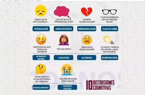 Impactan en la autorregulación, dijo el especialista, las distorsiones cognitivas como la personalización, etiquetación, falacia del cambio, pensamiento polarizado, entre otras.