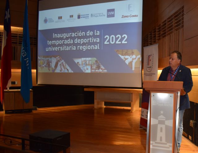 En el Aula Dr. Félix Morales Pettorino de la Universidad de Playa Ancha se inauguró la temporada deportiva universitaria regional 2022 al alero de la Federación Nacional Universitaria de Deportes, FENAUDE Zona Costa, integrada por instituciones de Educación Superior de la región de Valparaíso.