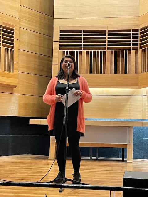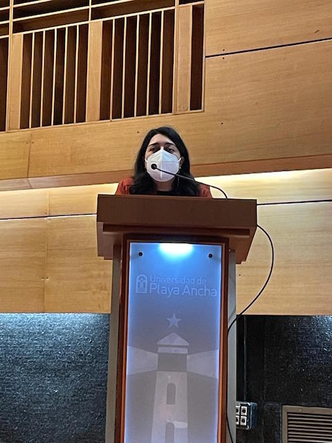 A nombre de los estudiantes habló Valentina Rojas Quezada, quien se refirió al significado de este acto, especialmente, porque les correspondió ingresar a la universidad en plena pandemia, lo que significó para todos, un gran desafío.