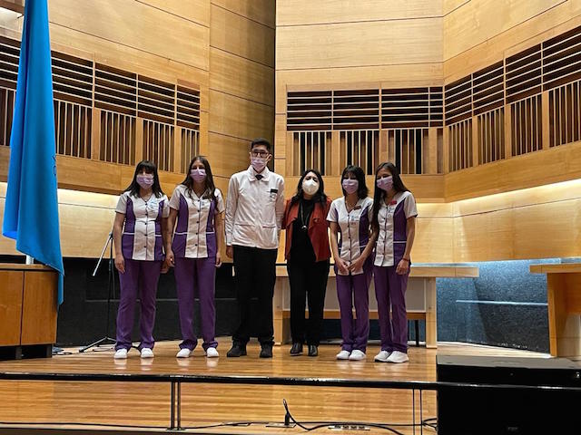 “Hoy, por primera vez visten el uniforme de Nutricionistas, marca de manera simbólica el inicio de sus prácticas y el compromiso con su proceso formativo. En esta ocasión, quiero, además, destacar a las familias y amigos que los acompañan hoy con su cariño y apoyo”, dijo la decana.