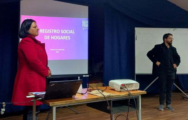 Desde la Seremi de Desarrollo Social y Familia, Javier Céspedes y Macarena Estay, apoyos profesionales regionales del RSH, dieron cuenta de la contextualización del instrumento de caracterización socioeconómica vigente en Chile, clave para los procesos de postulación y selección a los distintos programas y beneficios del Estado.