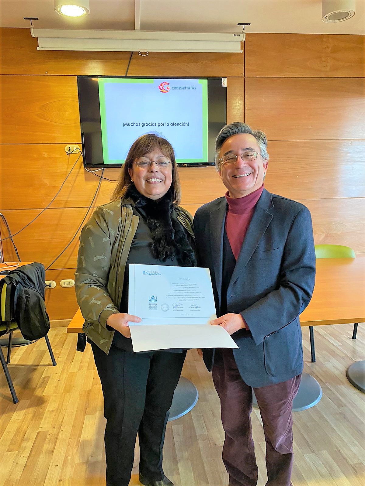 Académicos y estudiantes de la carrera Pedagogía en Historia y Geografía de la Facultad de Humanidades participaron de la jornada en la cual se dieron a conocer los principales alcances de la investigación realizada en el marco del proyecto Connected Worlds, con el patrocinio del Gobierno de España y de la Unión Europea.
