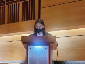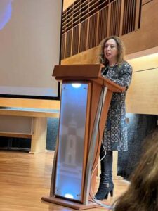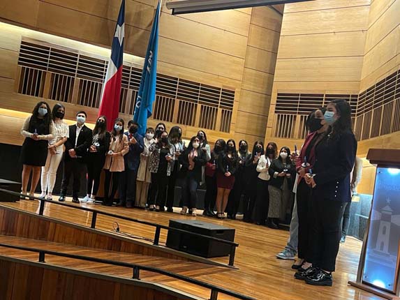 Los 28 estudiantes de la modalidad diurna y 6 de la vespertina, escucharon atentamente las palabras de Directora de la Carrera Giselle Escarpentier Feliú, quien destacó que esta generación ha enfrentado con éxito los problemas y dificultades que les impuso, por ejemplo, la pandemia: “Ustedes son una generación muy especial: fueron la primera generación, después de muchos años, que lograba conformar un Centro de Estudiantes, lo cual marcó un hito a nivel de carrera por el alto nivel de participación de los estudiantes de básica. Por otro lado, vivieron la pandemia 20-21 como estudiantes universitarios, pero también como practicantes en los establecimientos educacionales, lo que implicó ser capaces de reinventarse, aplicar todos los recursos que conocían y aprender nuevas estrategias para alcanzar procesos de aprendizajes efectivos”.